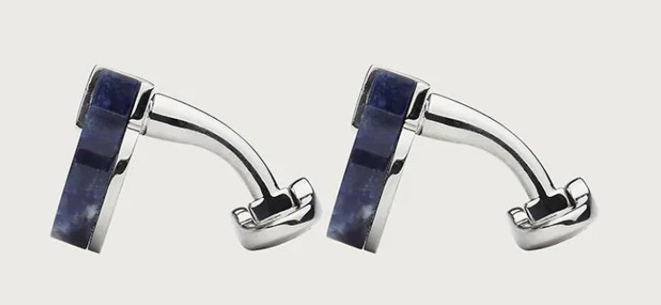 The iconic Gancini, symbol of elegance of the Maison, is reinterpreted with innovative materials to create these chic cufflinks. This model in lapis lazuli and brass with a glossy palladium finish is perfect for complementing formal looks with a contemporary twist. Length 23 mm Width 15 mm