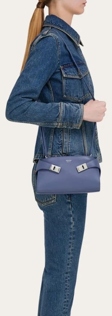 Understated yet unmissable, the Ferragamo mini Hug bag is the perfect clutch to elevate any look. Cut from rich calfskin leather, the silhouette is true to the iconic Hug line, with wide straps that wrap the sides and fasten at the front via two palladium-toned Gancio clasps. A zip fastening opens to reveal an organized interior with dual card slots, while the removable leather strap offers a hands free styling option.