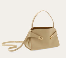 Made of calfskin it features a single handle for a softer silhouette on the front panel, which is decorated with golden Gancini buckles. Closed with an internal flap equipped with magnets and a practical T-bar, this version features a contrasting lining for a refined color block effect. The central zipped compartment divides the interior into perfectly organized sections. Adjustable and detachable strap for multiple styling options.