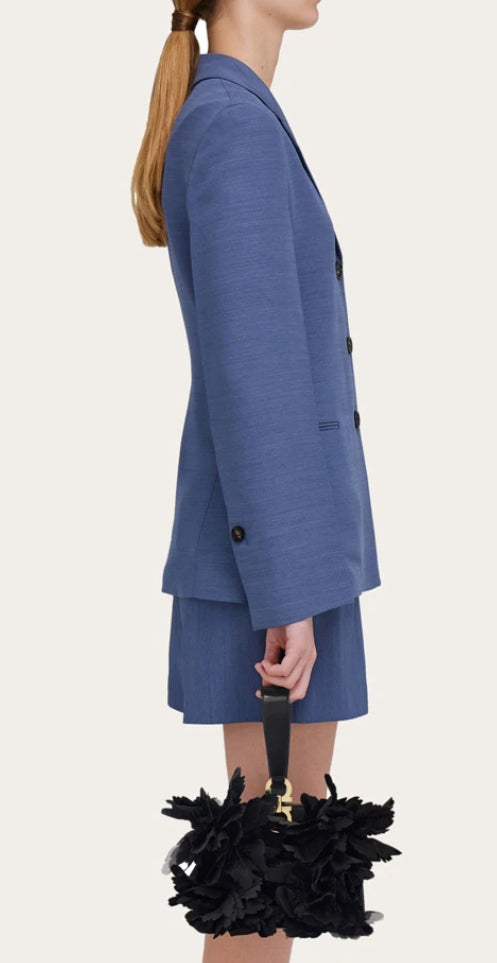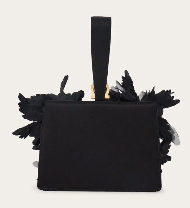 Designed for your most special occasions, this mini clutch features sleek geometric lines and satin panels, accented by a strap secured with a gold-finish double Gancini. The organza and satin flowers on the front are handcrafted and applied one by one, creating a striking, three-dimensional effect.