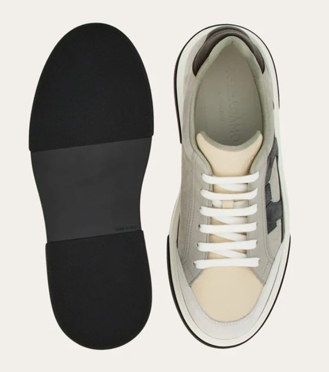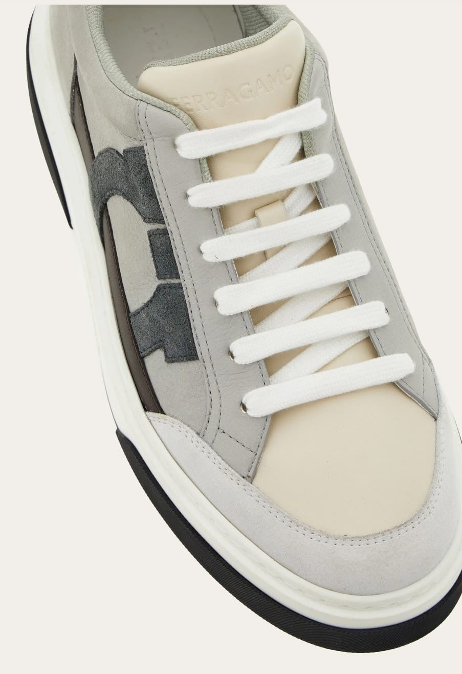 Low cut sneaker made of technical mesh with suede and leather inserts. The nineties inspired line has a basketball feel, given an iconic touch by the Gancini inlay on the side. Ultra-light rubber sole with knurled edges and custom tread.