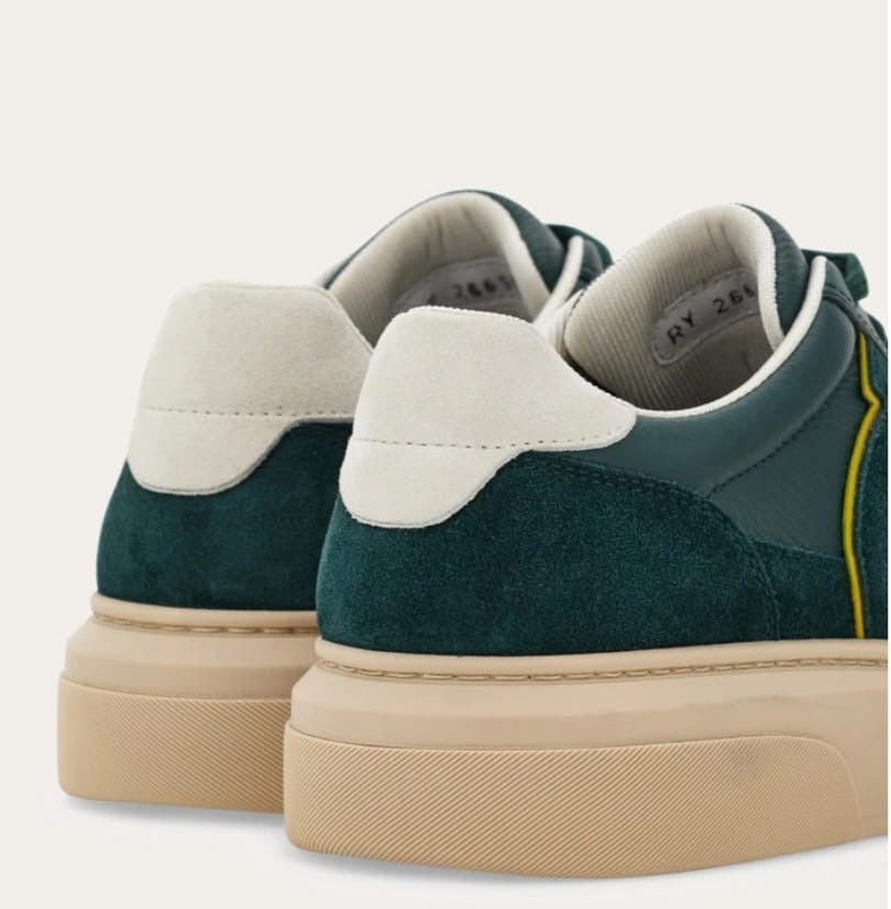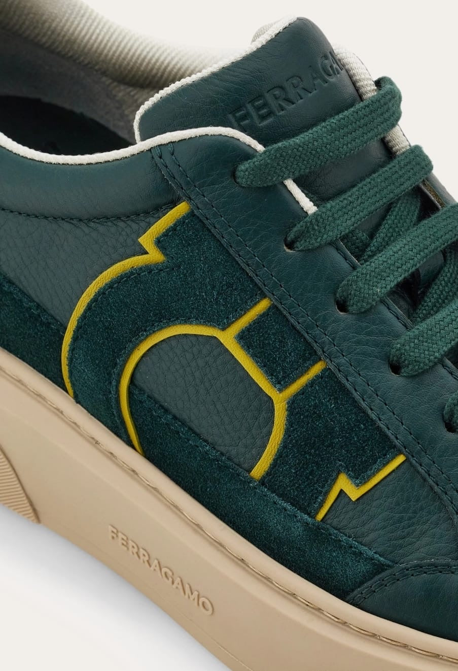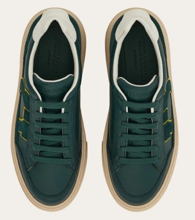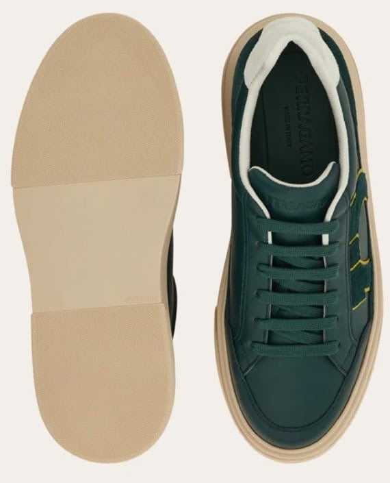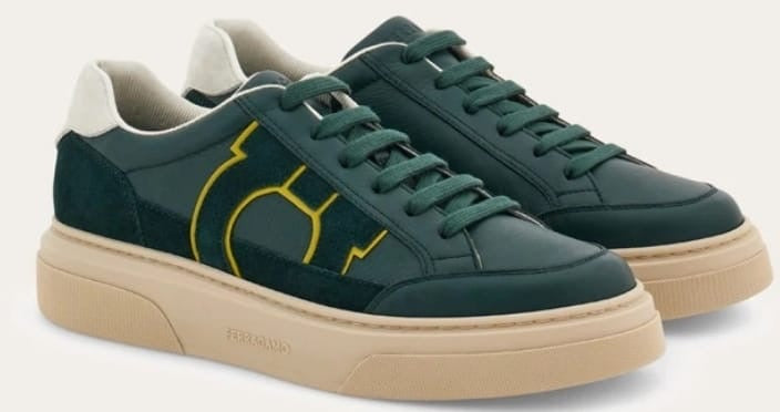 Sneakers low skin with suede details. The lines are inspired by the basketball shoes of the 90s, adorned with a side intarsia with Gancini silhouette. Rubber sole with ground edges and custom floor.
