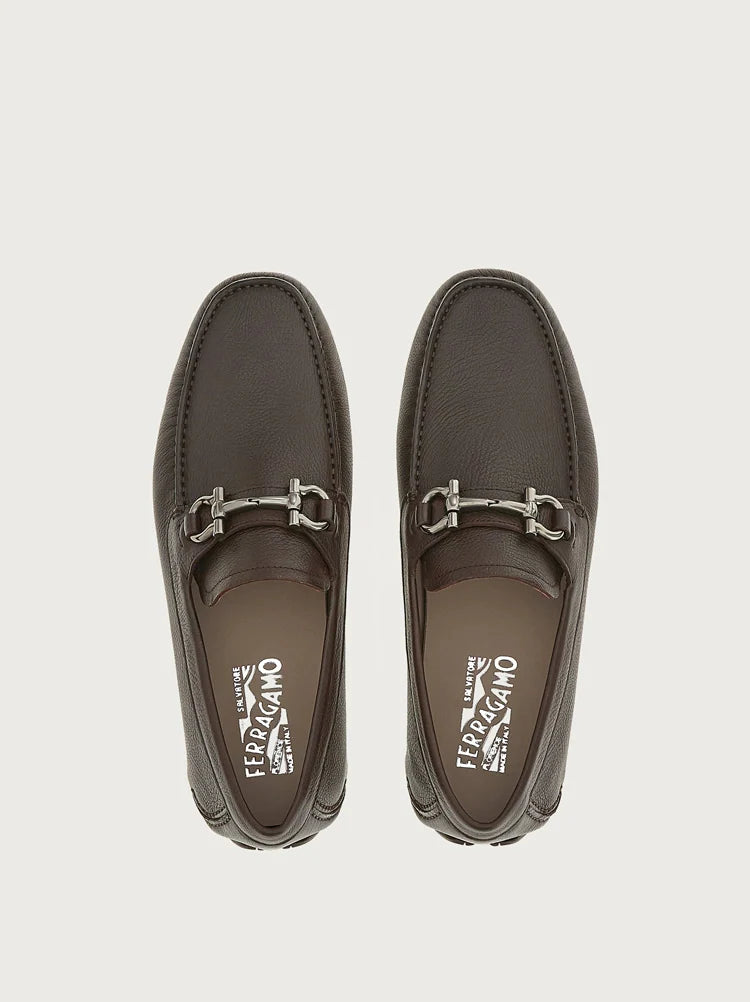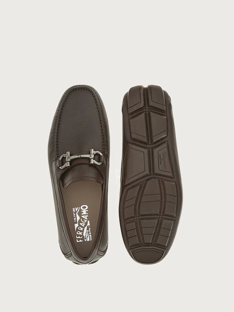 These elegant driving shoes are made from hammered calfskin leather with an almost two-tone effect. Adorned with a gunmetal Gancini bit and personalized rubber sole, they are ideal for informal and casual looks. The exquisite tubular construction imparts a soft and lightweight feel, while the traditional hand-crafted upper ensures a refined finish.